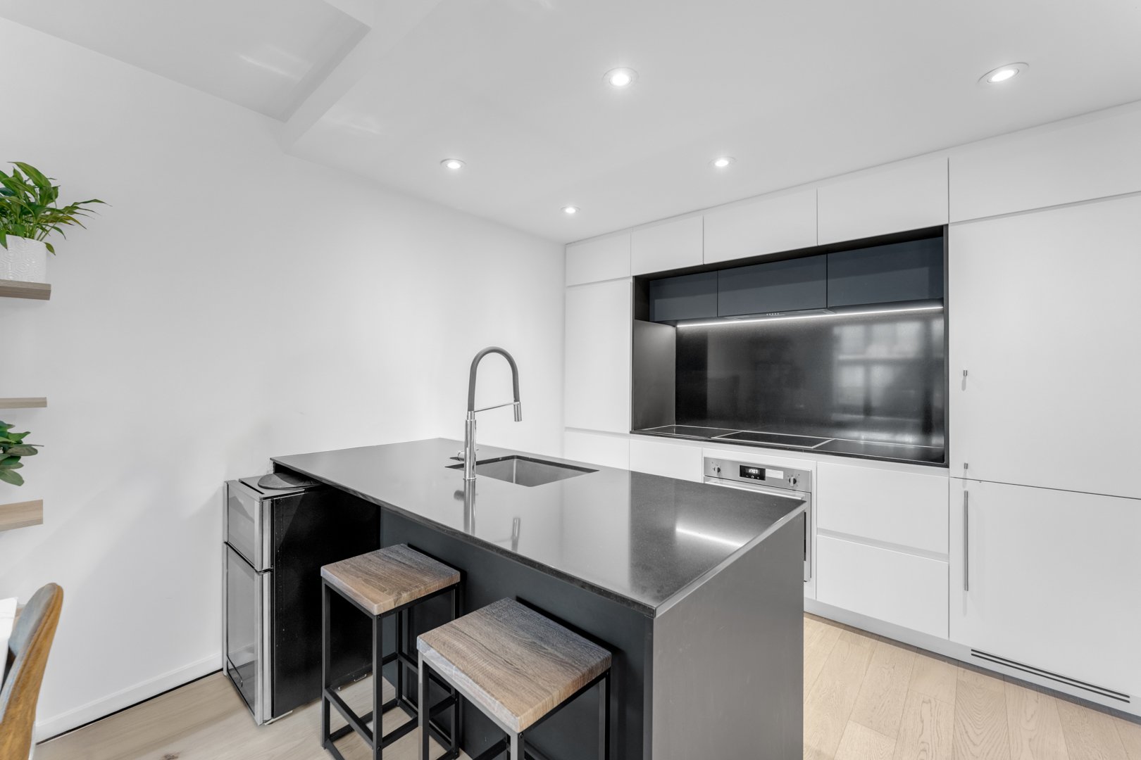 - Modern kitchen featuring quartz countertops.