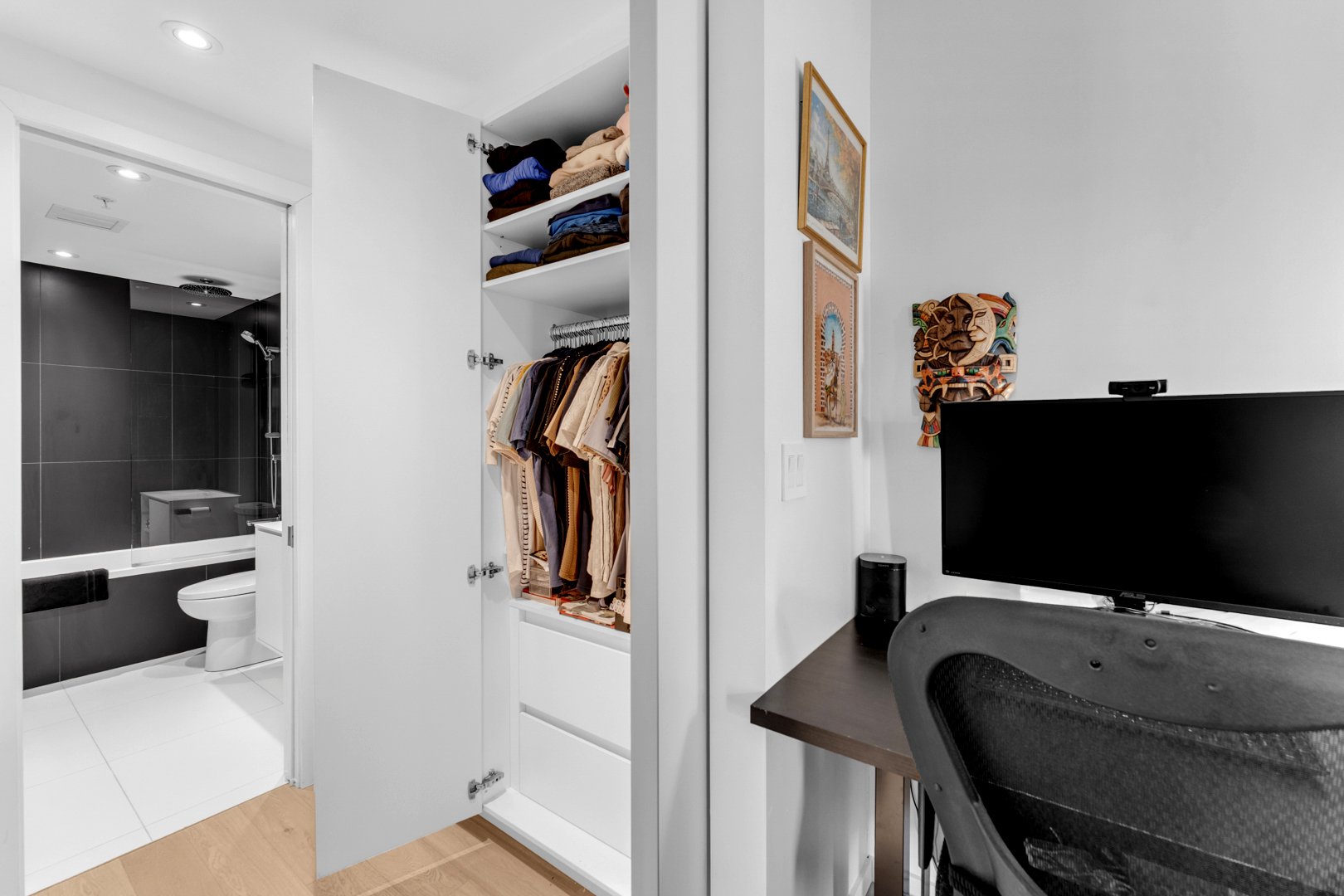 - Built-in melamine wardrobes.