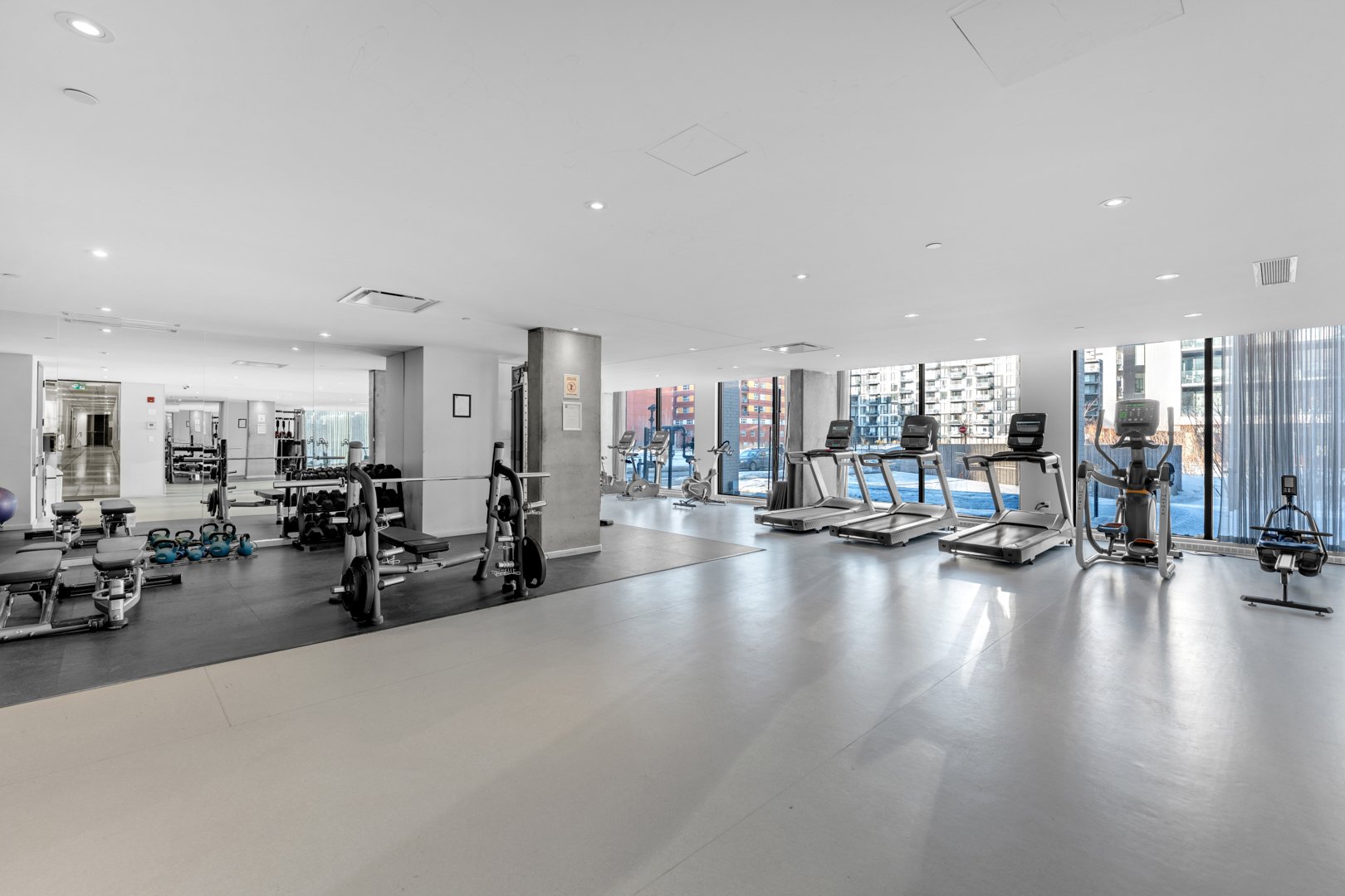 - Fully equipped fitness center overlooking the park.