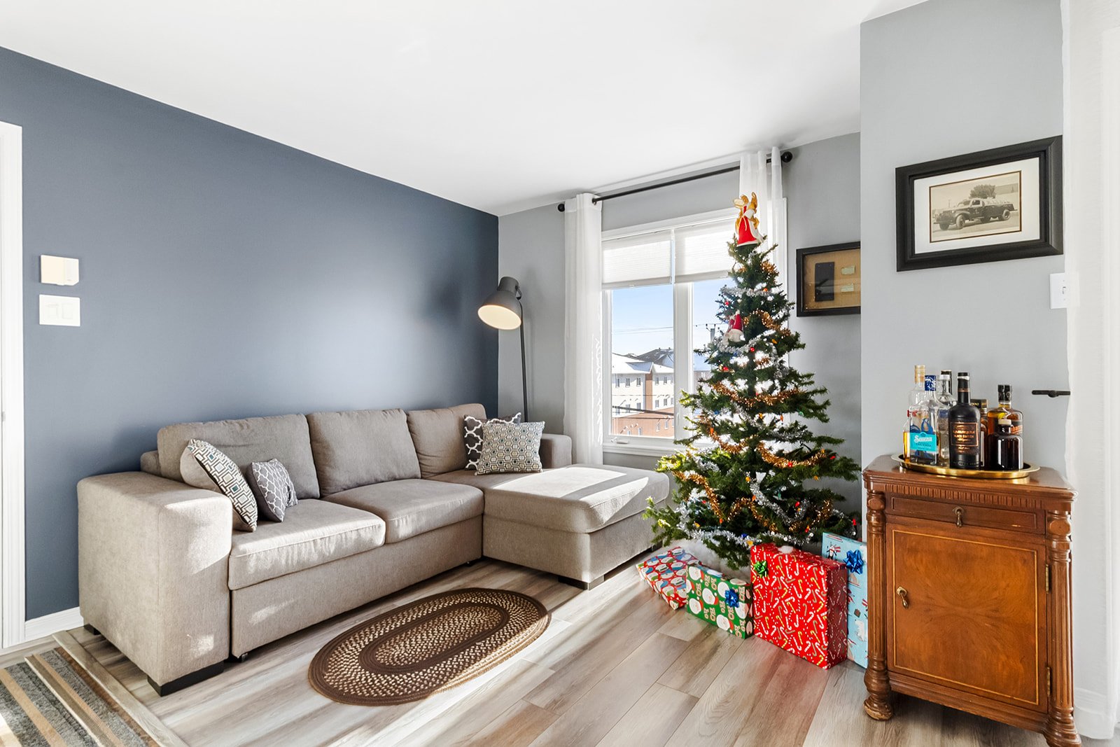 Beautiful and spacious 1,105 sq.ft. condo in the heart of St-Hubert in Longueuil. Bathed in natural light, the open living area features a cozy living room with a wood fireplace and front balcony, a generous dining space for hosting, and a galley-style kitchen leading to a rear balcony with stunning views of Mont St-Hilaire. Offers 2 closed bedrooms and a den easily convertible into a 3rd bedroom, a large bathroom with separate tub and shower, and linen storage. Includes exterior parking and private storage. Near the REM, DIX30 and Promenades St-Bruno. An absolute must-see!