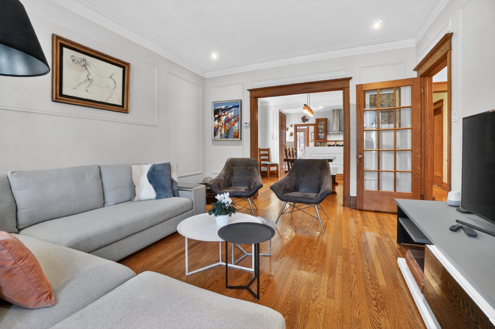 Ideally located steps from the heart of Monkland Village, this spacious, renovated lower duplex features four bedrooms, including a large one in the basement, an office, two renovated bathrooms, a beautiful open-concept kitchen with access to a terrace, and a large landscaped paved backyard--perfect for summer gatherings. High ceilings, rich hardwood floors, and abundant natural light complete this turnkey home. Just a corner from Monkland Street, it's close to all amenities: Villa Maria metro station, grocery stores, restaurants, pharmacies, schools, and parks. Public transportation (multiple bus lines) and easy access to Highway 15