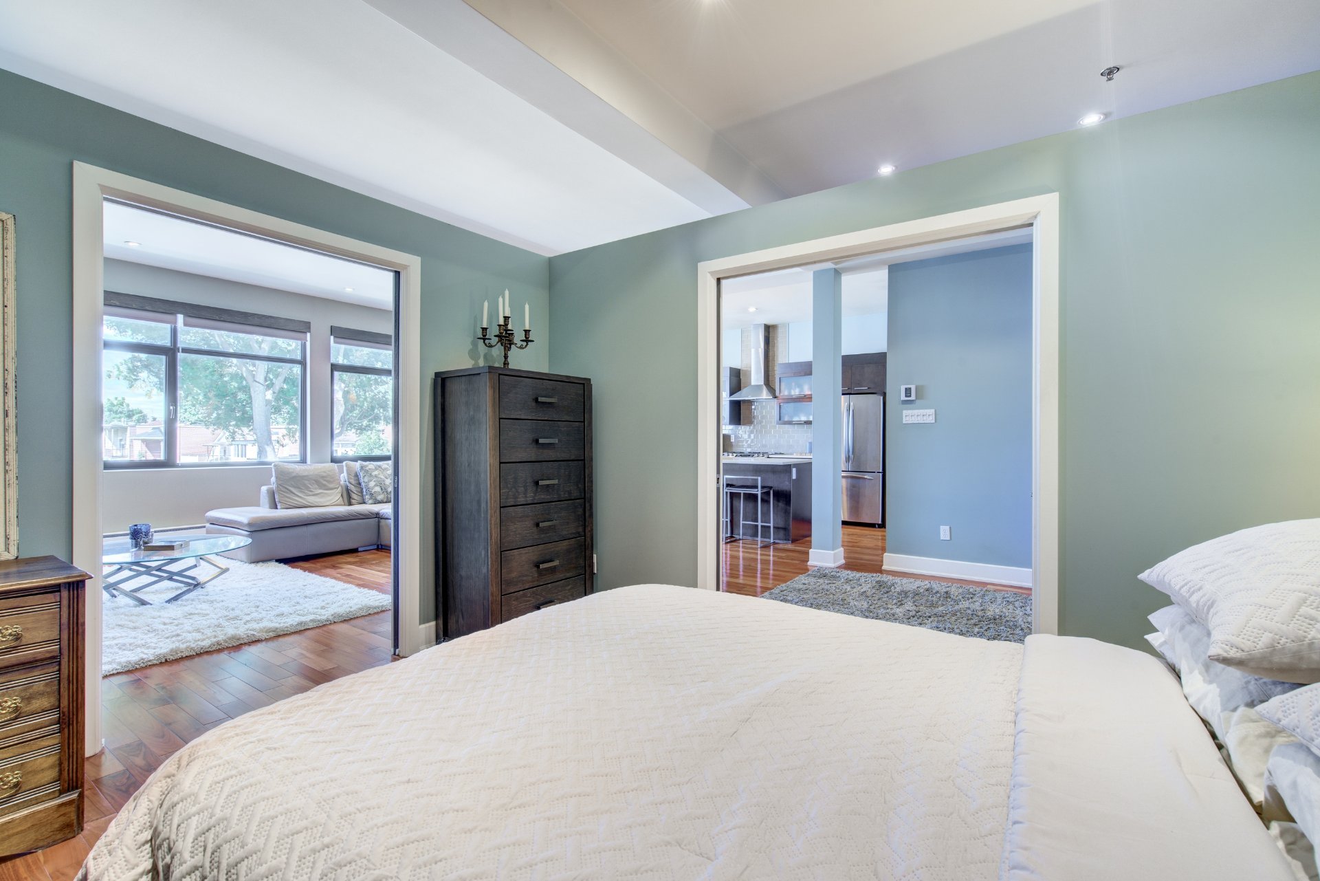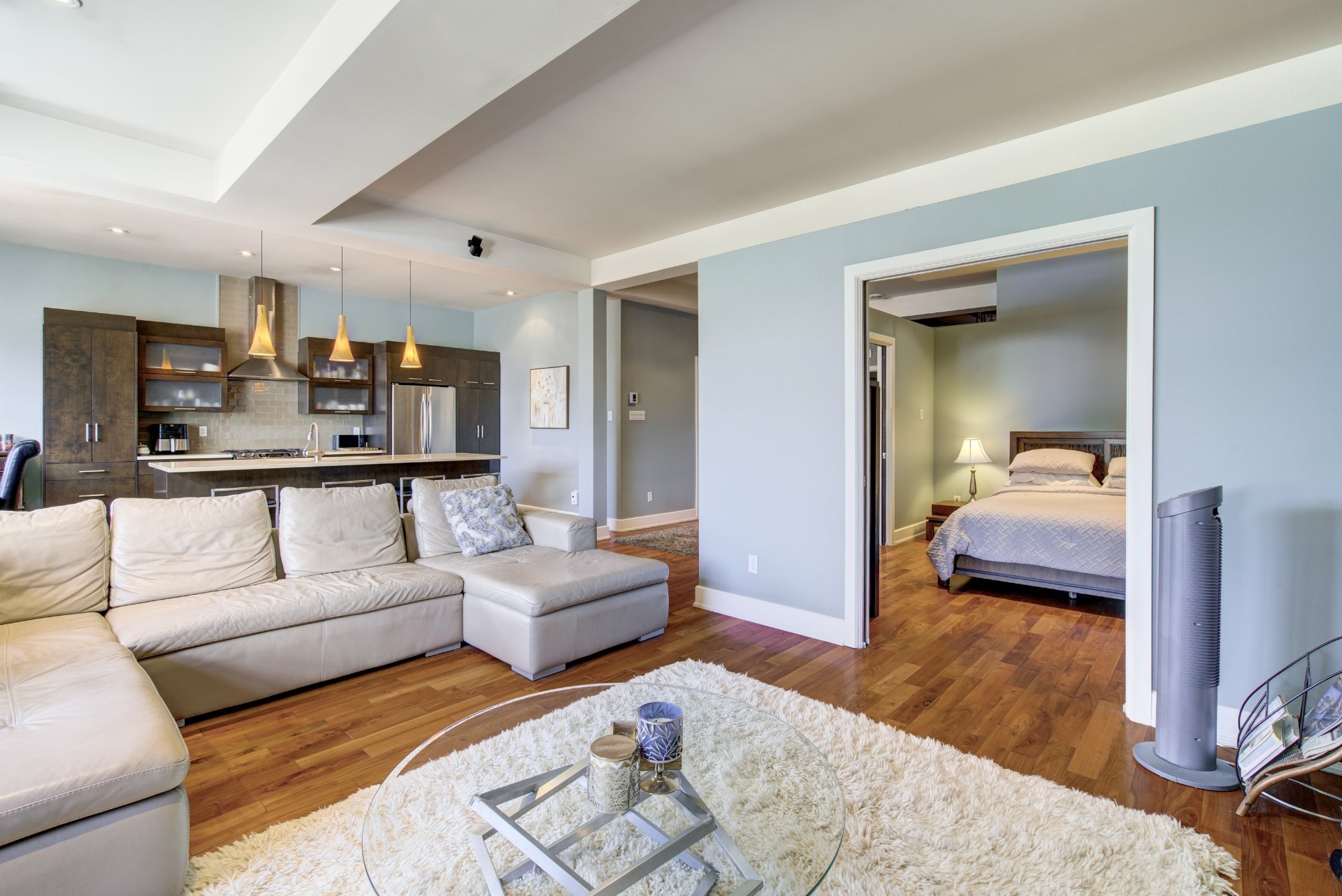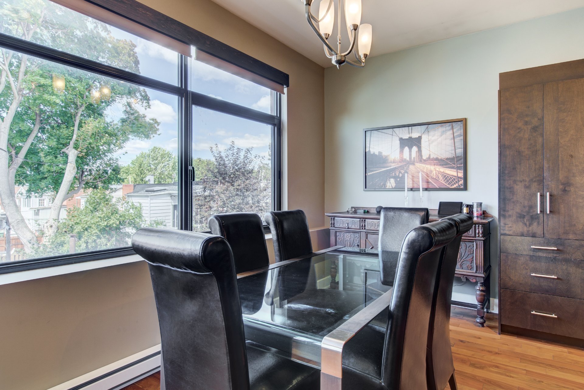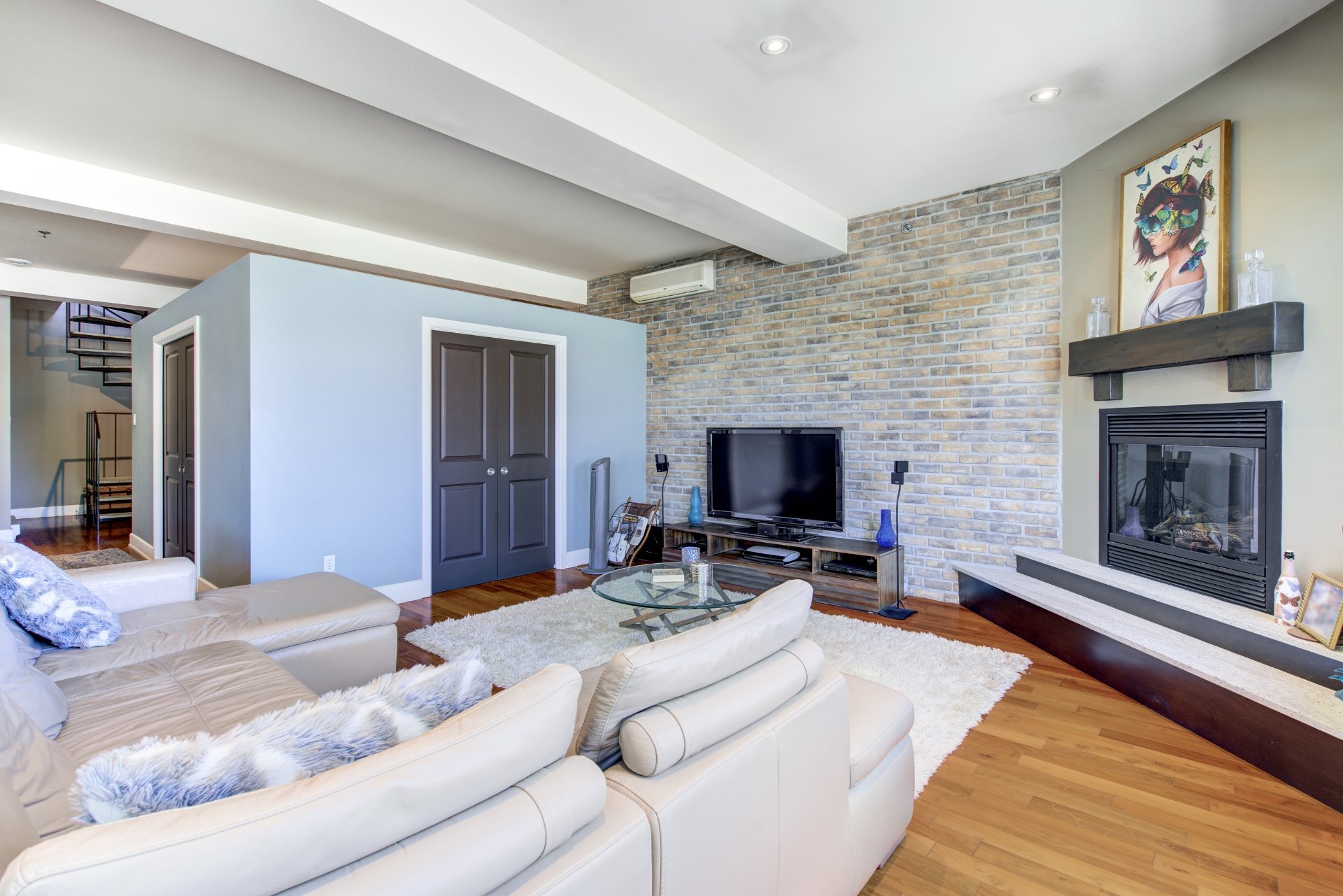 Discover this 1,560 sq. ft. condo on 2 floors with a magnificent private terrace of over 500 sq. ft. Generous windows and abundant light. Unit on two floors: on the first floor, open space with modern kitchen, living room, dining room, bedroom and bathroom/laundry room. 2nd bedroom, bathroom and kitchenette upstairs with access to the terrace. High ceilings and gas fireplace. Storage and garage included. Elevator in the building. Close to Parc des Rapides and its bike path along the Saint-Laurent and a 5-minute drive from Place LaSalle.