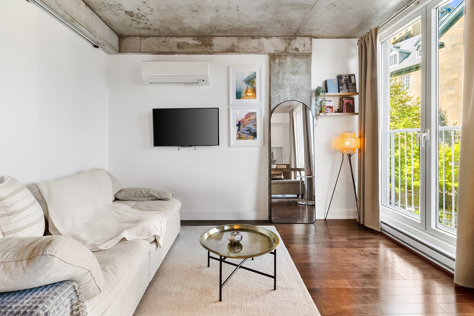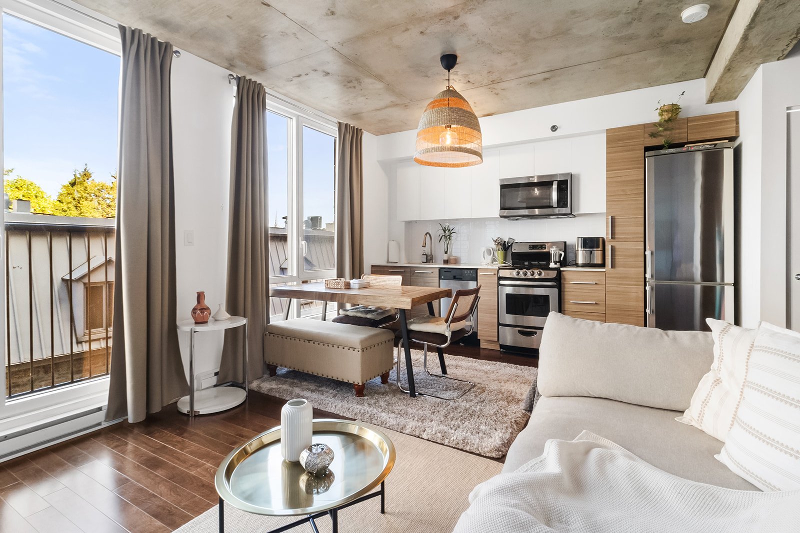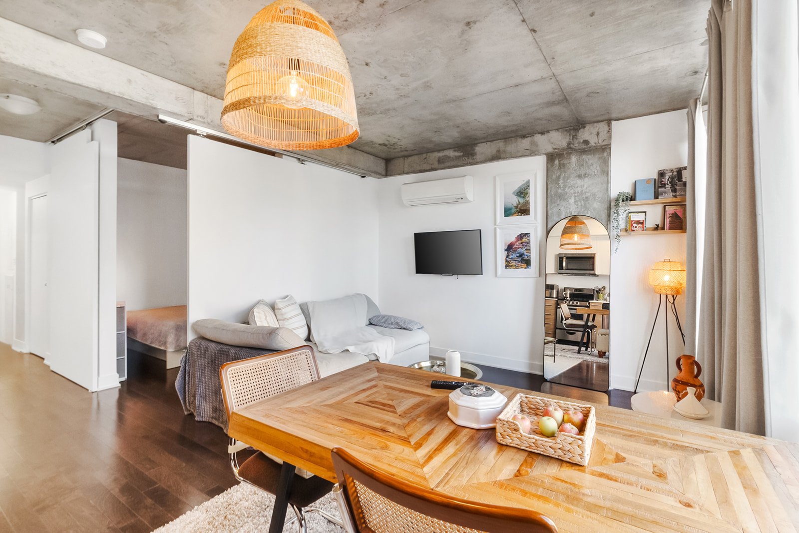 Wonderful modern condominium nestled in the heart of the Quartier des spectacles, a vibrant area offering privileged access to culture, festivals, and Montreal's urban lifestyle. This elegant unit features a spacious bedroom, a refined bathroom, a contemporary kitchen with sleek design, and large windows that flood the space with natural light. Just steps from the metro, downtown, cafés, restaurants, and cultural events, it perfectly combines comfort, style, and accessibility.