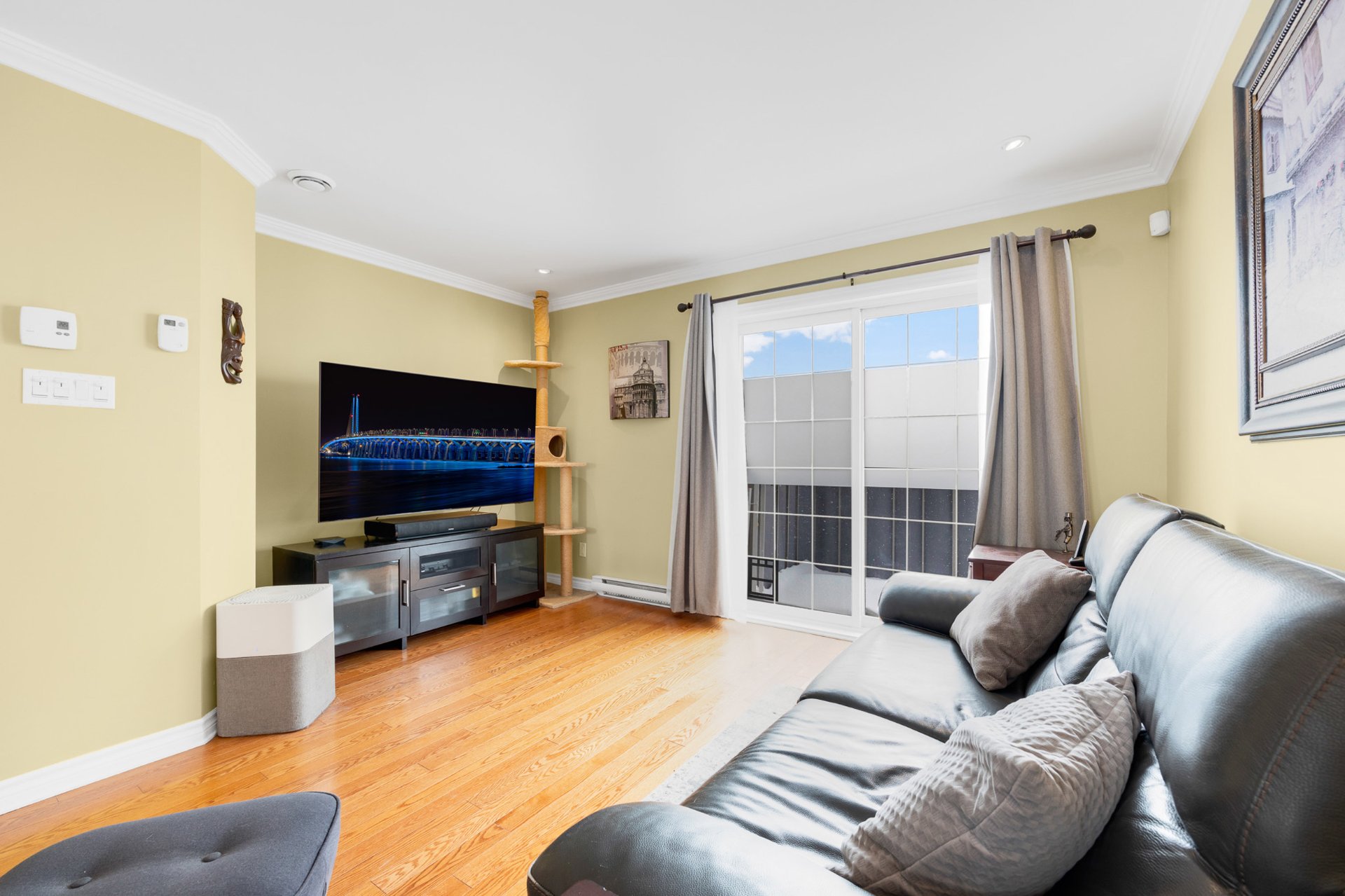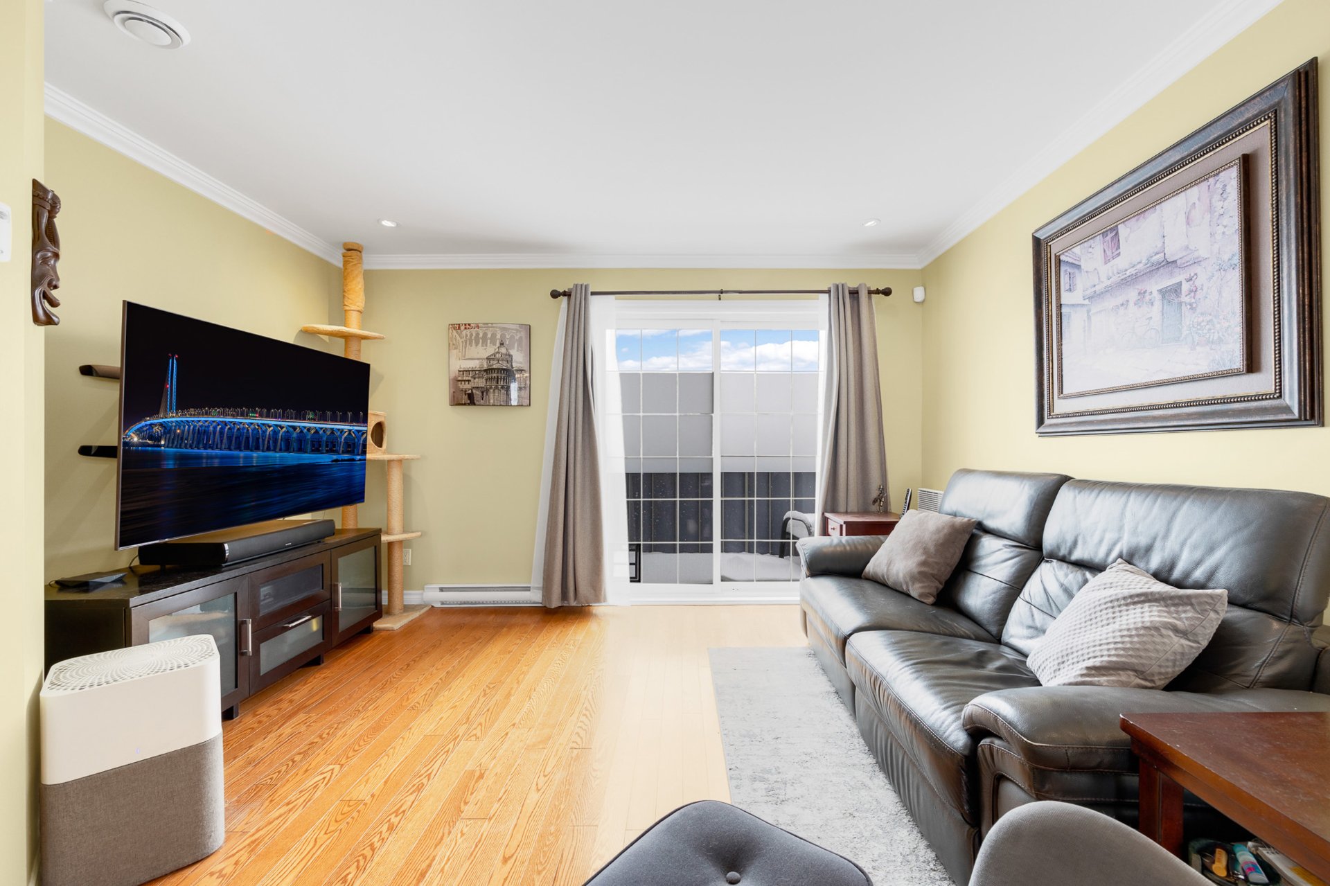 A rare opportunity. This 2006 3-bedroom condo offers the privacy of a home with the ease of condo living. Set in a fully detached building with an exclusive 3-unit condominium, it features a private entrance and superior soundproofing (poured concrete between floors). Flooded with natural light, the space showcases hardwood and ceramic floors and a gas fireplace for cozy evenings. The inviting kitchen opens to a 12 x 10 deck--perfect for relaxing or entertaining. Parking and storage shed included. Located in a quiet, desirable neighborhood close to everything. Distinctive, comfortable, and truly special.