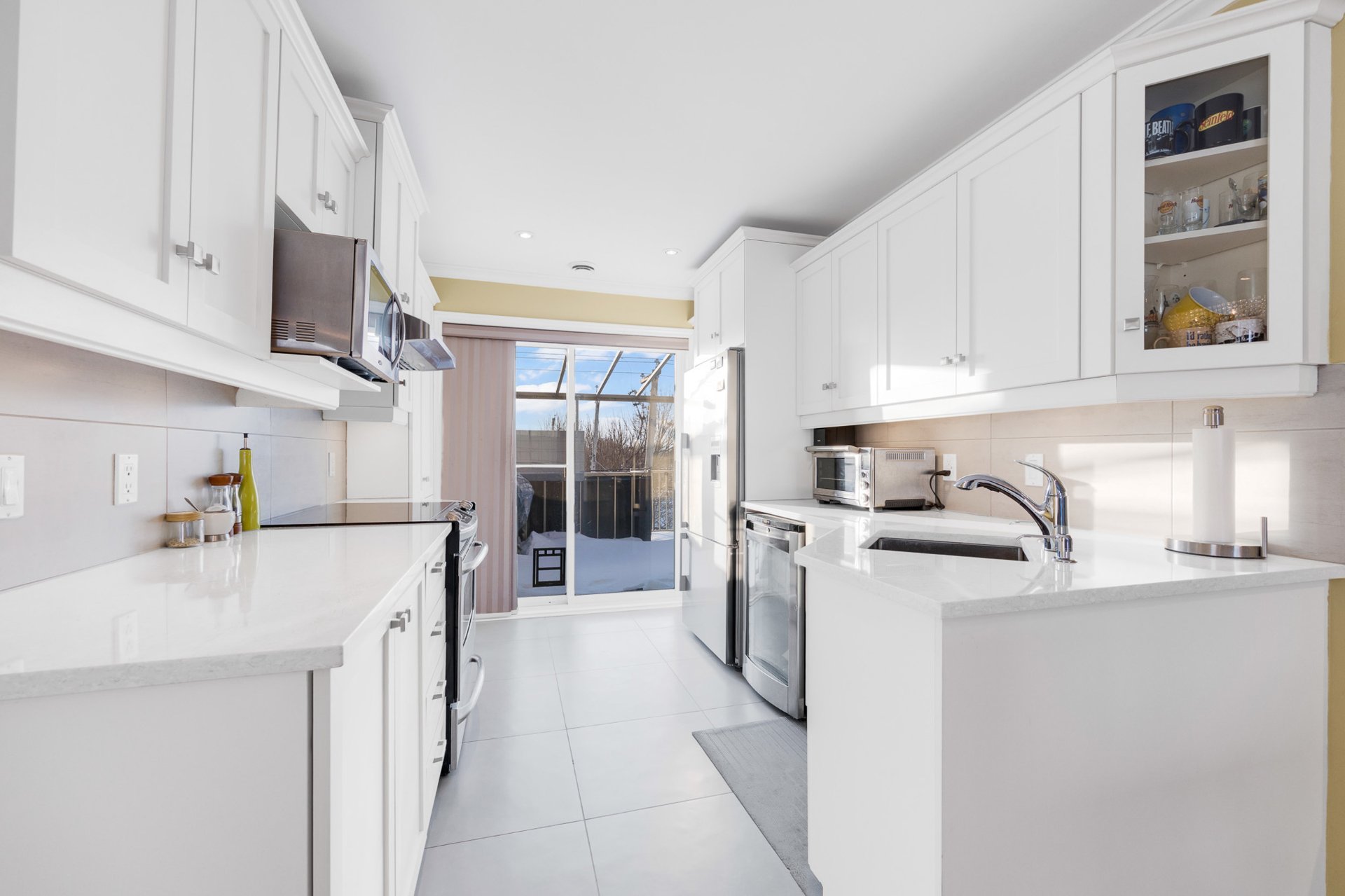 The functional and inviting kitchen features white-colored