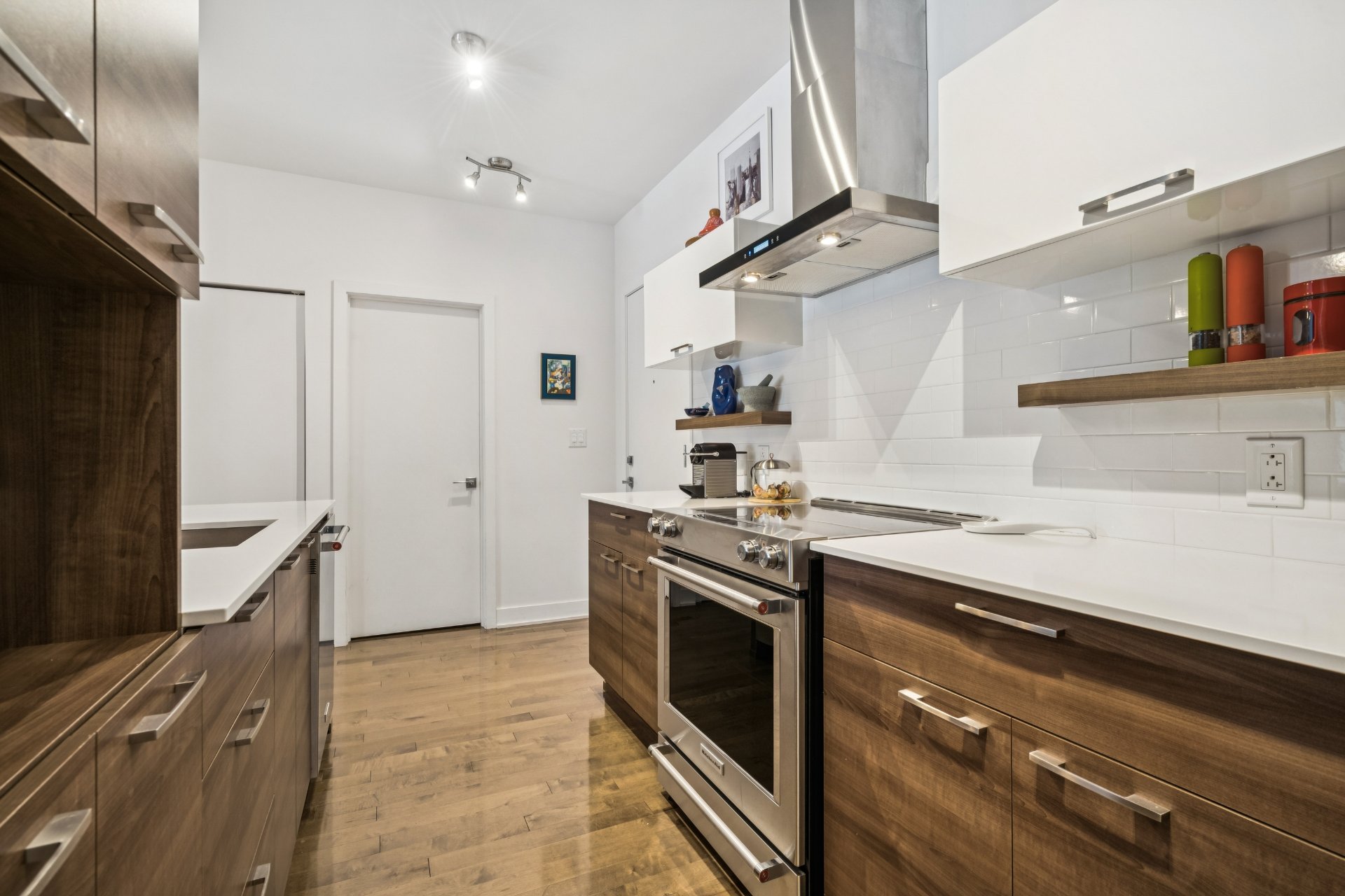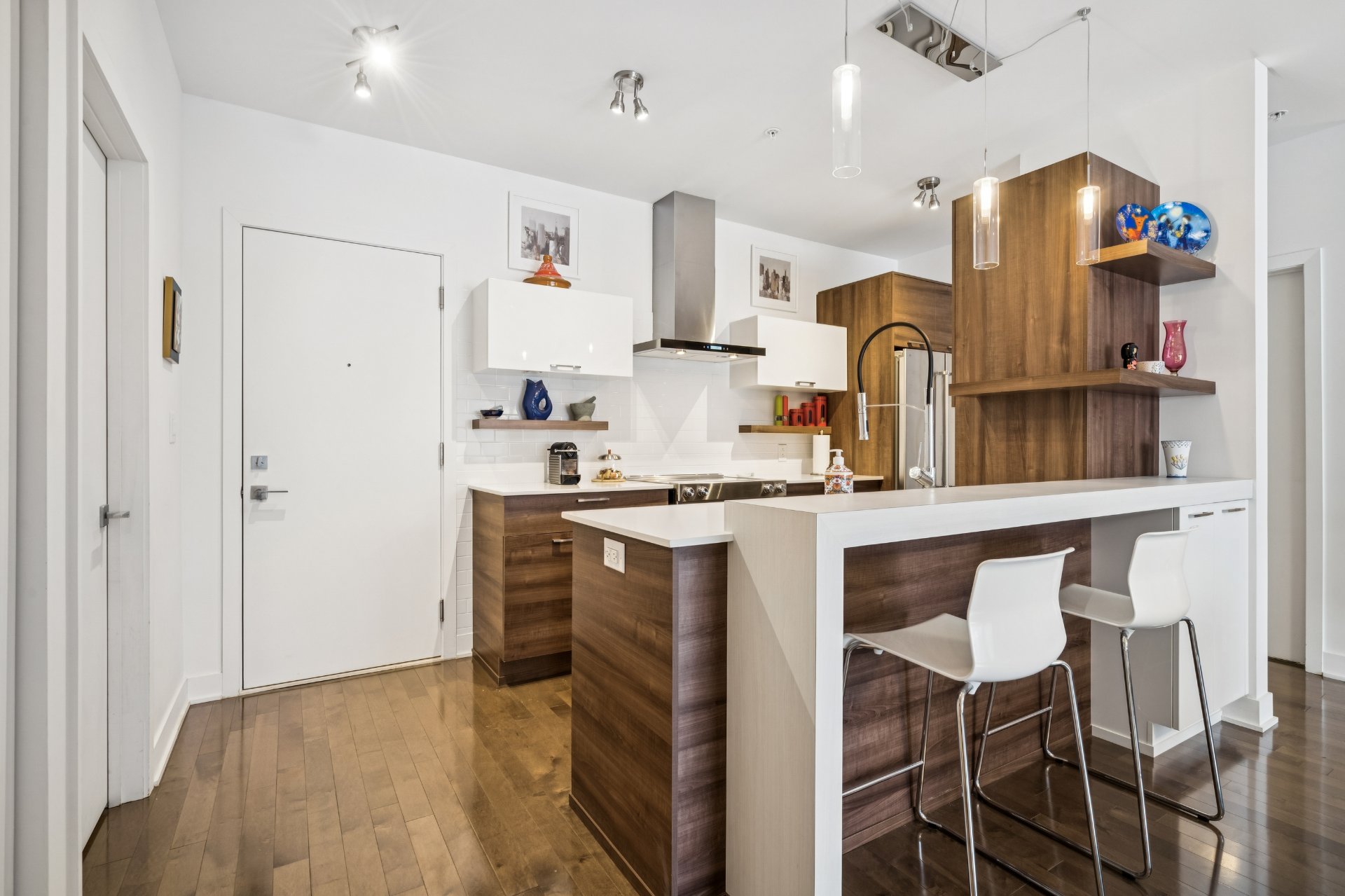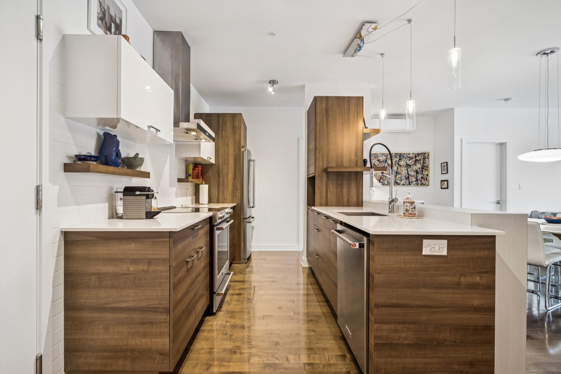 Contemporary kitchen with ample storage and breakfast