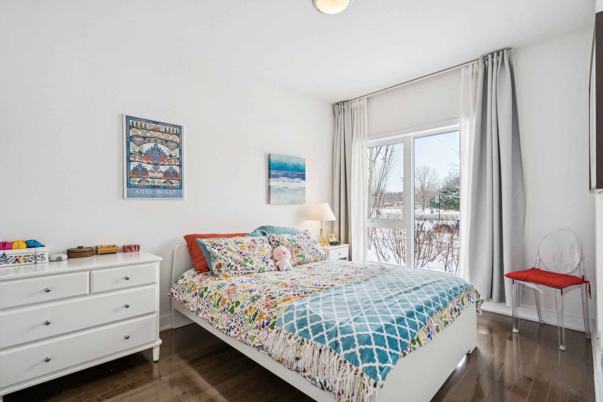 Le Rose Philipps II: Turnkey condo located in a recent building, owned by the same proprietor since construction, in the heart of the highly sought-after Petite-Patrie neighbourhood. Exceptional location directly facing Père-Marquette Park and the green network, ideal for walking or cycling. Open-concept living space enjoying views of the park. Contemporary kitchen with breakfast counter. Two bedrooms, including a primary bedroom with walk-in closet. Modern bathroom featuring a glass-enclosed shower and bathtub. Common rooftop terrace offering panoramic views, perfect for summer evenings. Storage space and bicycle rack included.