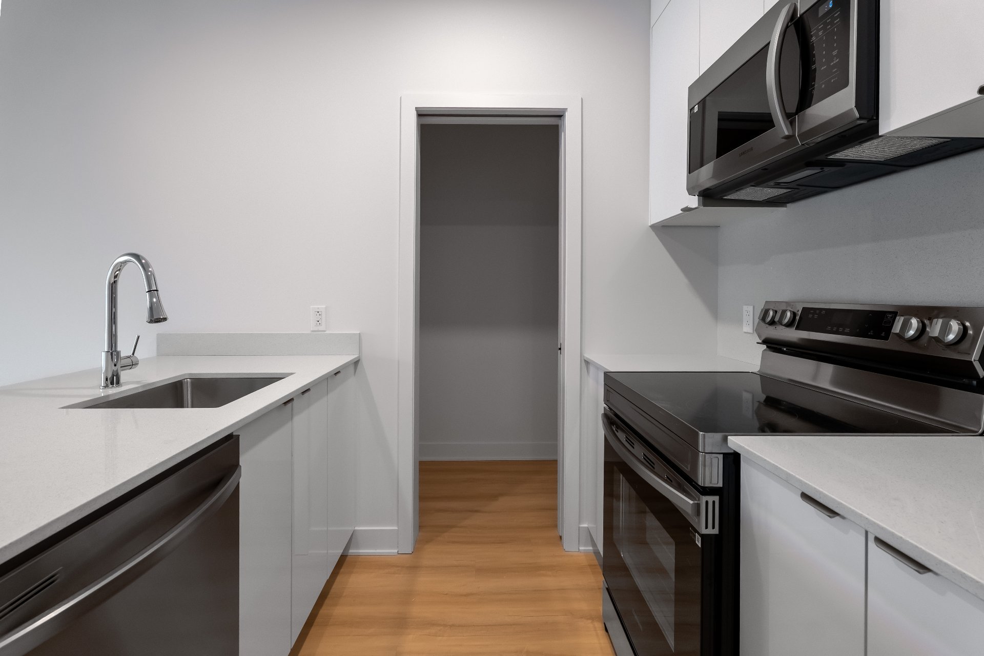 Brand-new construction offering 20 modern rental units (3 ½ -- 4 ½ -- 5 ½) available from December 2025. Located directly on the REM line, this newly built project features concrete floors, A/C wall units, hot water,1 locker, and appliances. Bright, contemporary layouts with quality finishes and excellent soundproofing. No pets allowed. No smoking allowed. Ideally situated near major highways, parks, services, and public transit.