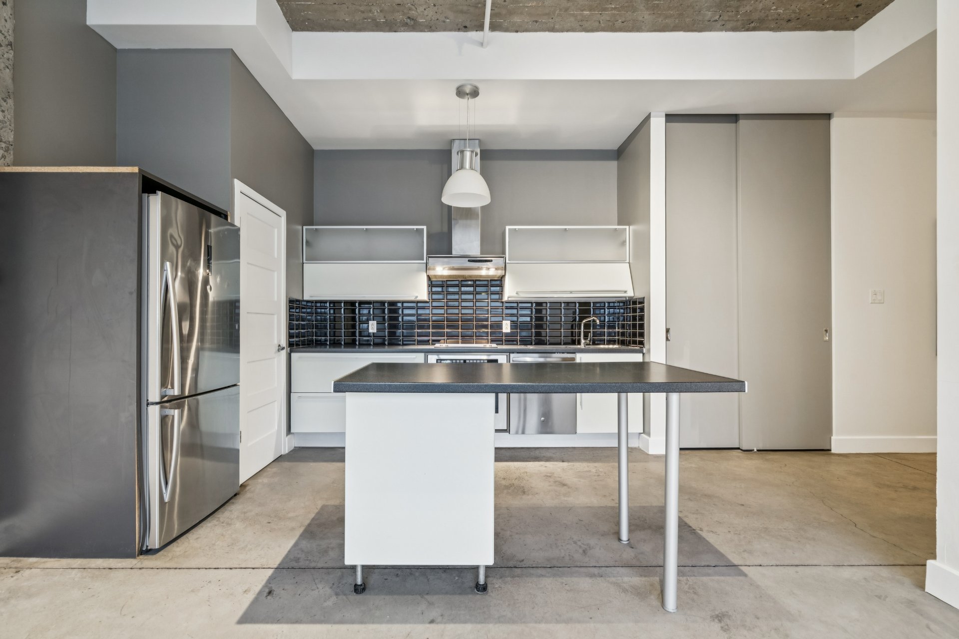 Unity Lofts : Stunning loft on the 9th floor of a historic building in a prime location, just steps from Square Victoria metro! Modern open-concept unit with a New York-style loft design, featuring high ceilings and impressive natural light thanks to corner windows. Modern kitchen with a central island. Bathroom with a large glass-enclosed shower. Storage included.