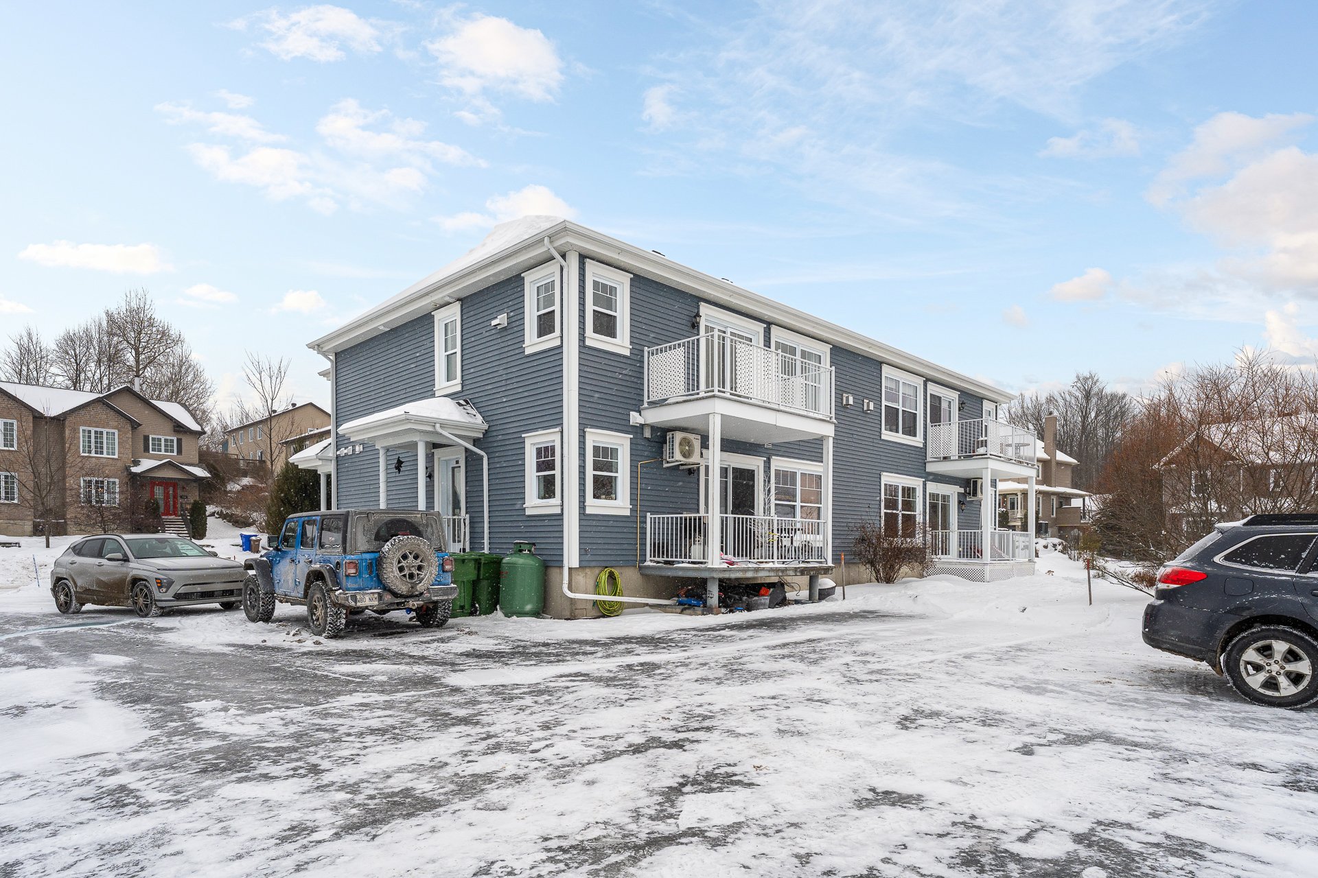 You're sure to fall in love with this corner unit condo, offering exceptional natural light and an inviting open-concept living space. The living room with its gas fireplace creates a warm and welcoming atmosphere. The unit features two spacious bedrooms, a full bathroom with a separate shower, and has benefited from numerous renovations over the years. This small building of only four units guarantees peace and privacy. The large, elevated corner lot is conveniently located near amenities, Mont-Orford, and the La Montagnarde bike path.