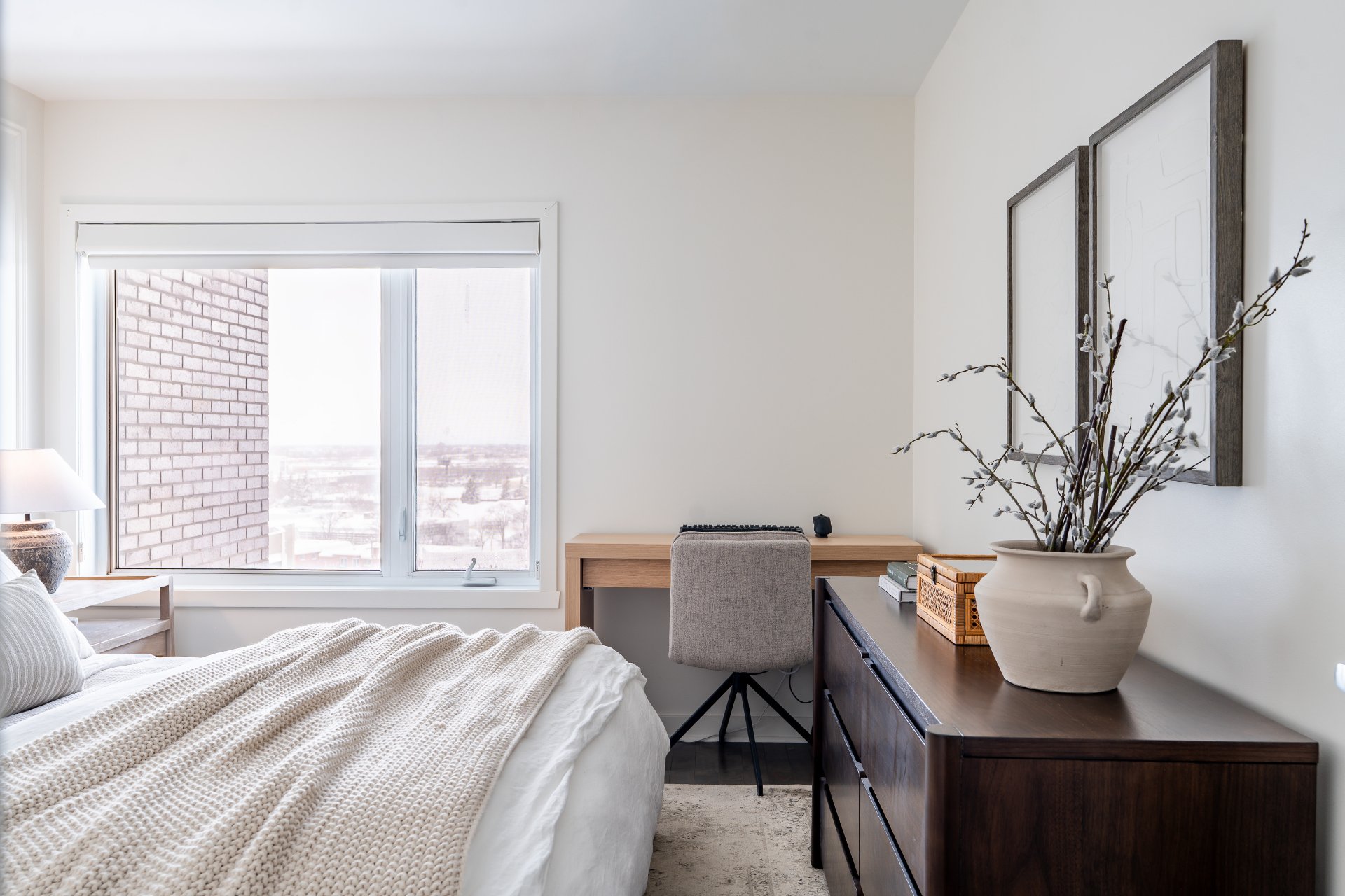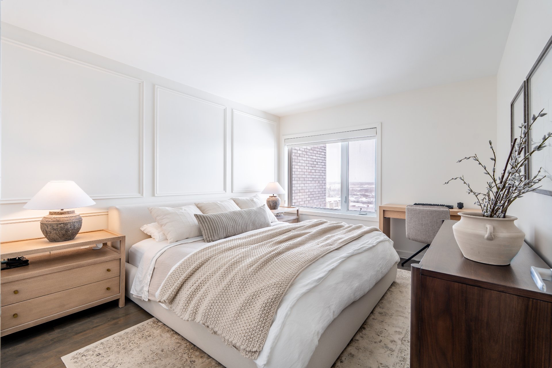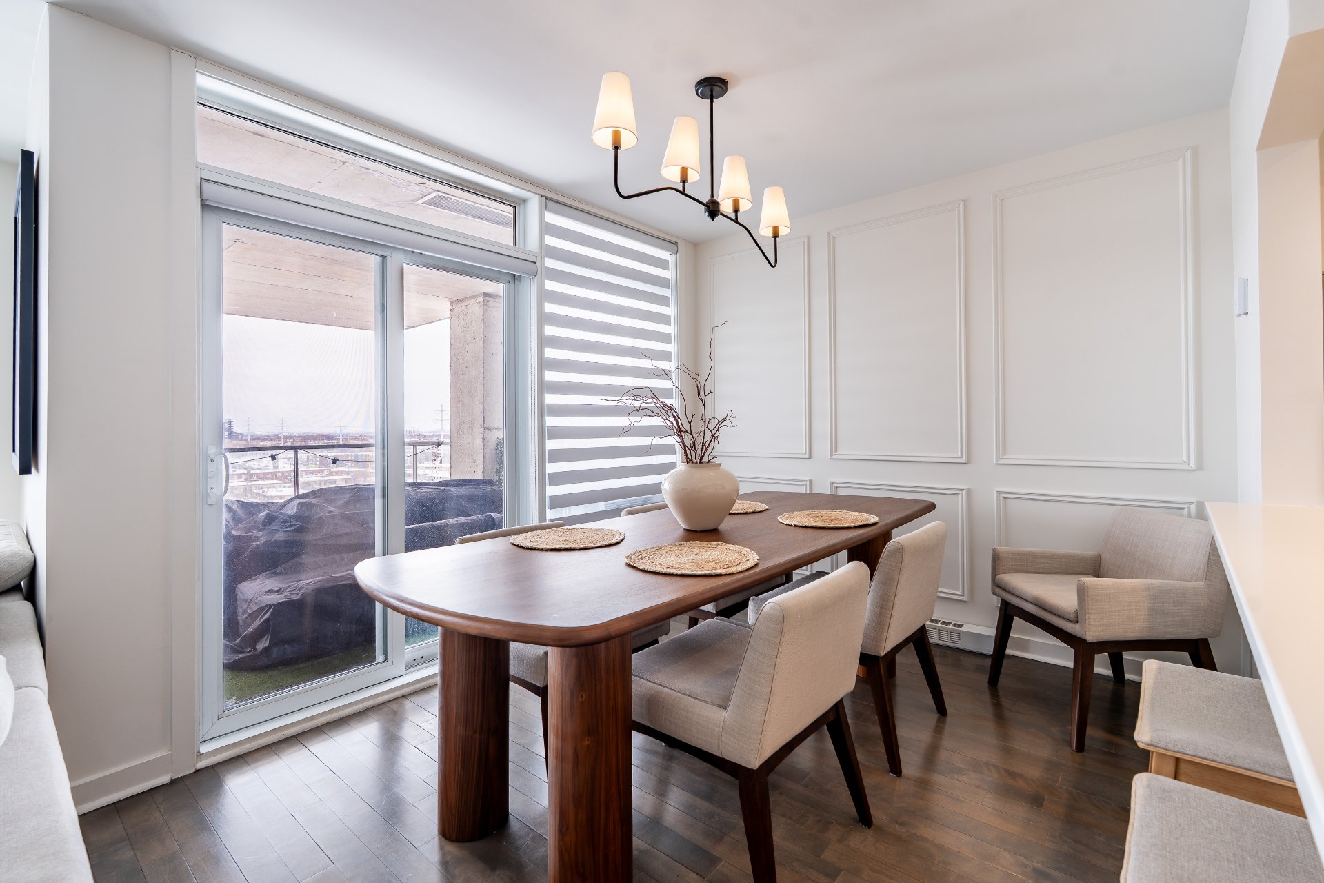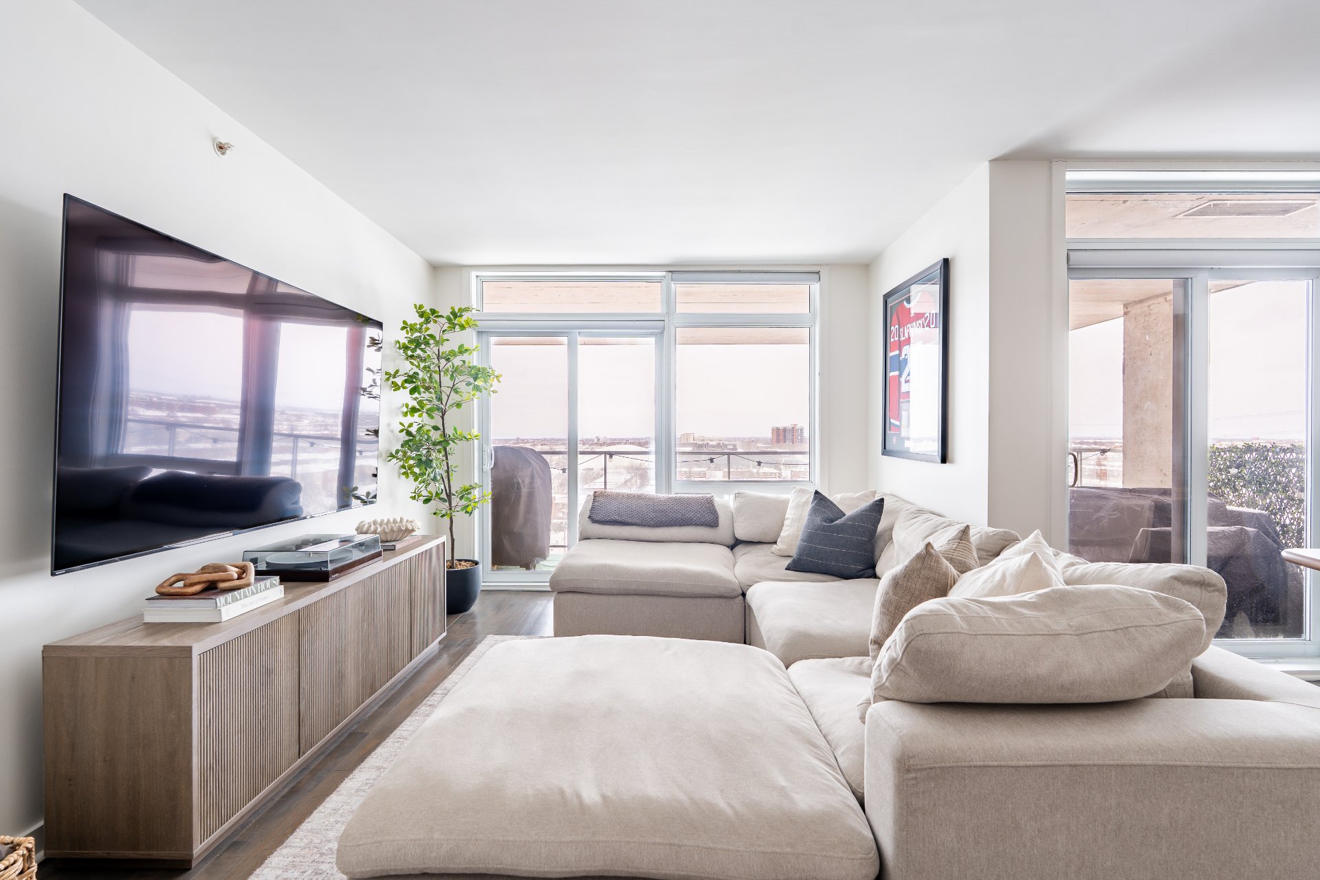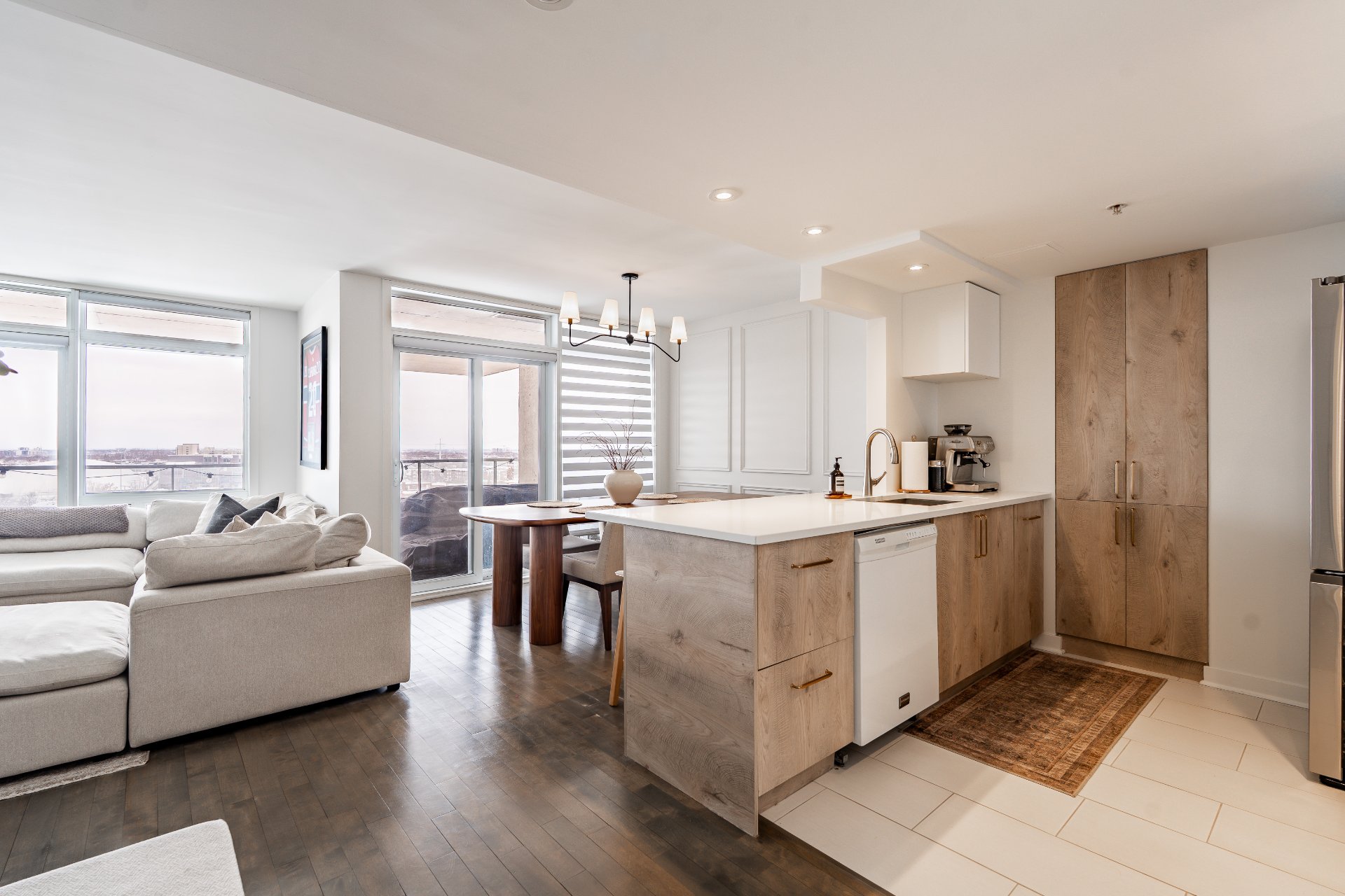 with natural light thanks to its large windows. The modern