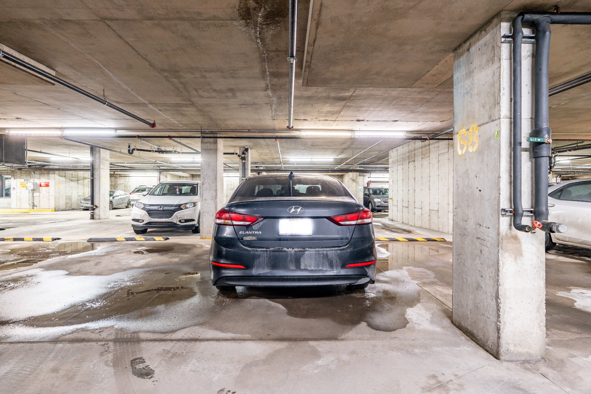 The unit includes one indoor parking space and one private