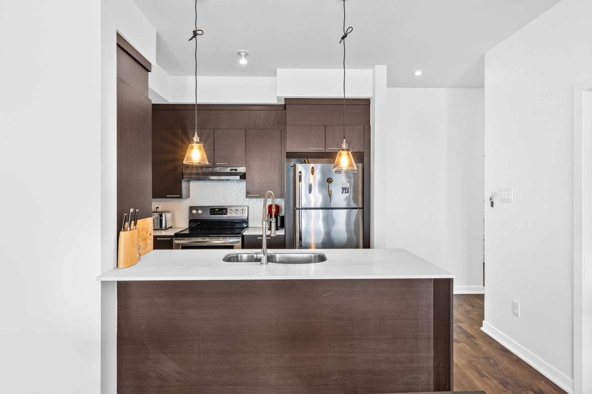Bright ,Open Concept 1 Bedroom Condo , Impeccably maintained Featuring high Ceilings,Quartz Counters and hard wood floors.Super garage parking and storage locker,Fitness room, owner occupied and never rented .Situated within all amenities School,Metro,Rem,Hospitals ,Shoping,Cegeps and Universitys. Featuring high Ceilings,Quartz Counters and hard wood floors.Super garage parking and storage locker,Fitness room, owner occupied and never rented.welcome home.