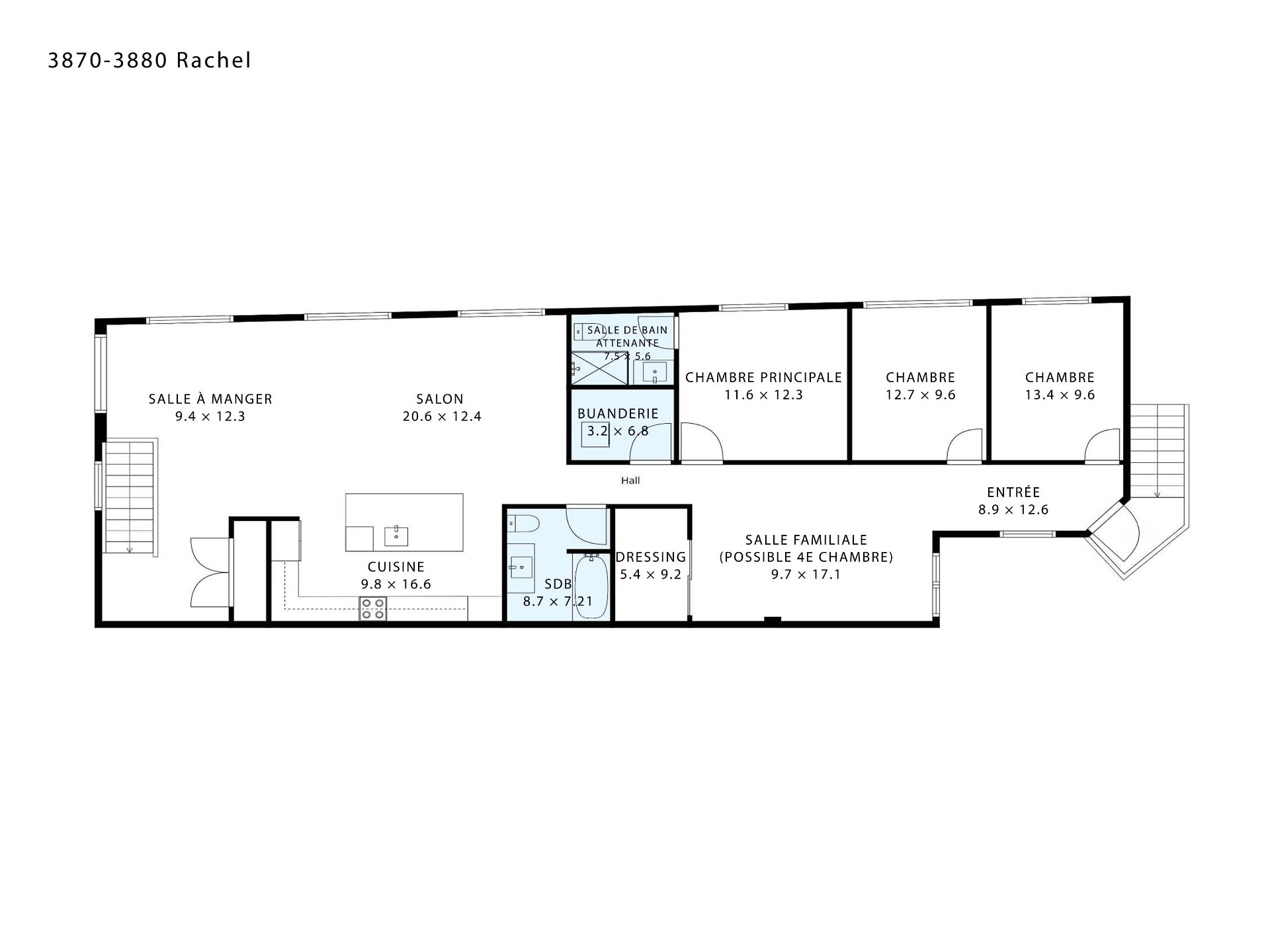 | Salle familiale | 9.7 x 17.1 P | 2ième étage | |